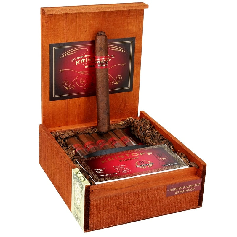 Savor the medium-full Kristoff Sumatra Matador with spice and cedar notes. Complex premium gordo.